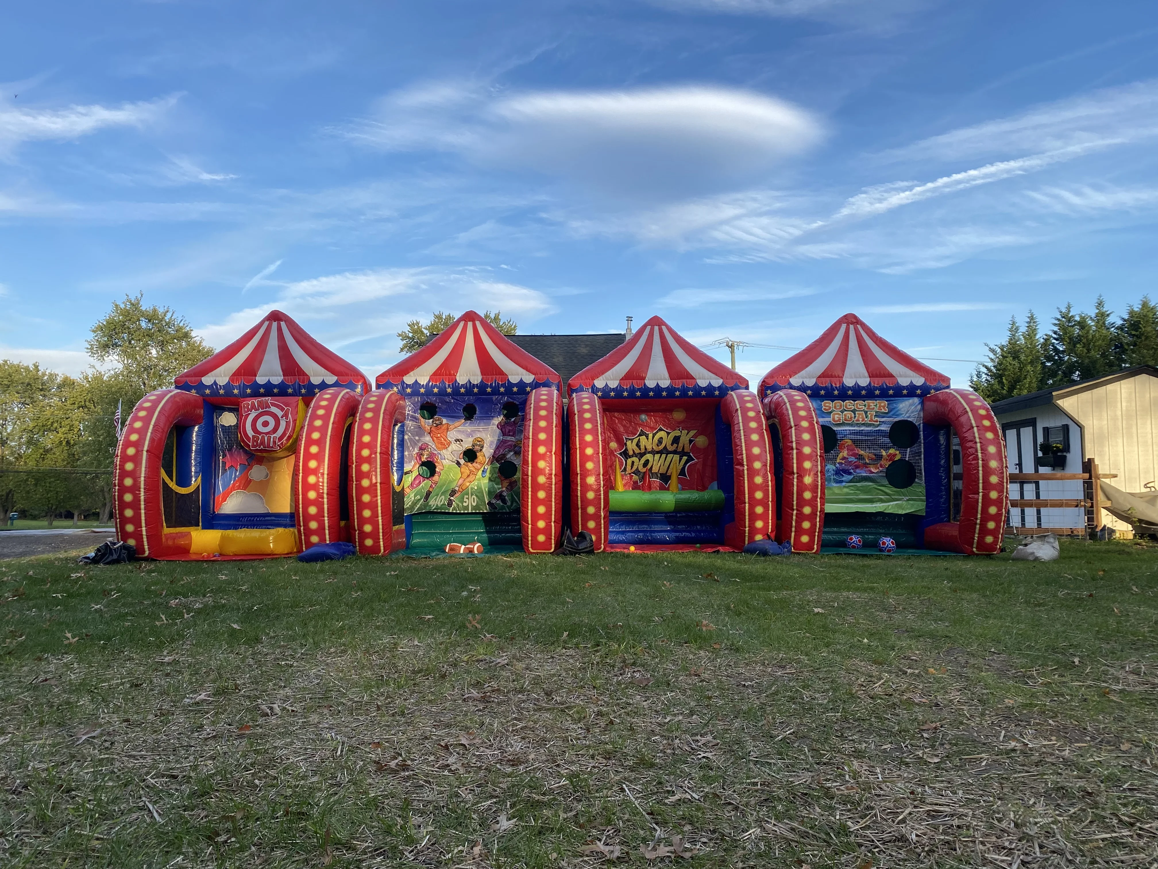5 in 1 Inflatable Carnival Bundle Sport Games Multi Sports, Axe Throw, Bank a Ball, Football Game, Knock Down, Baseball Game