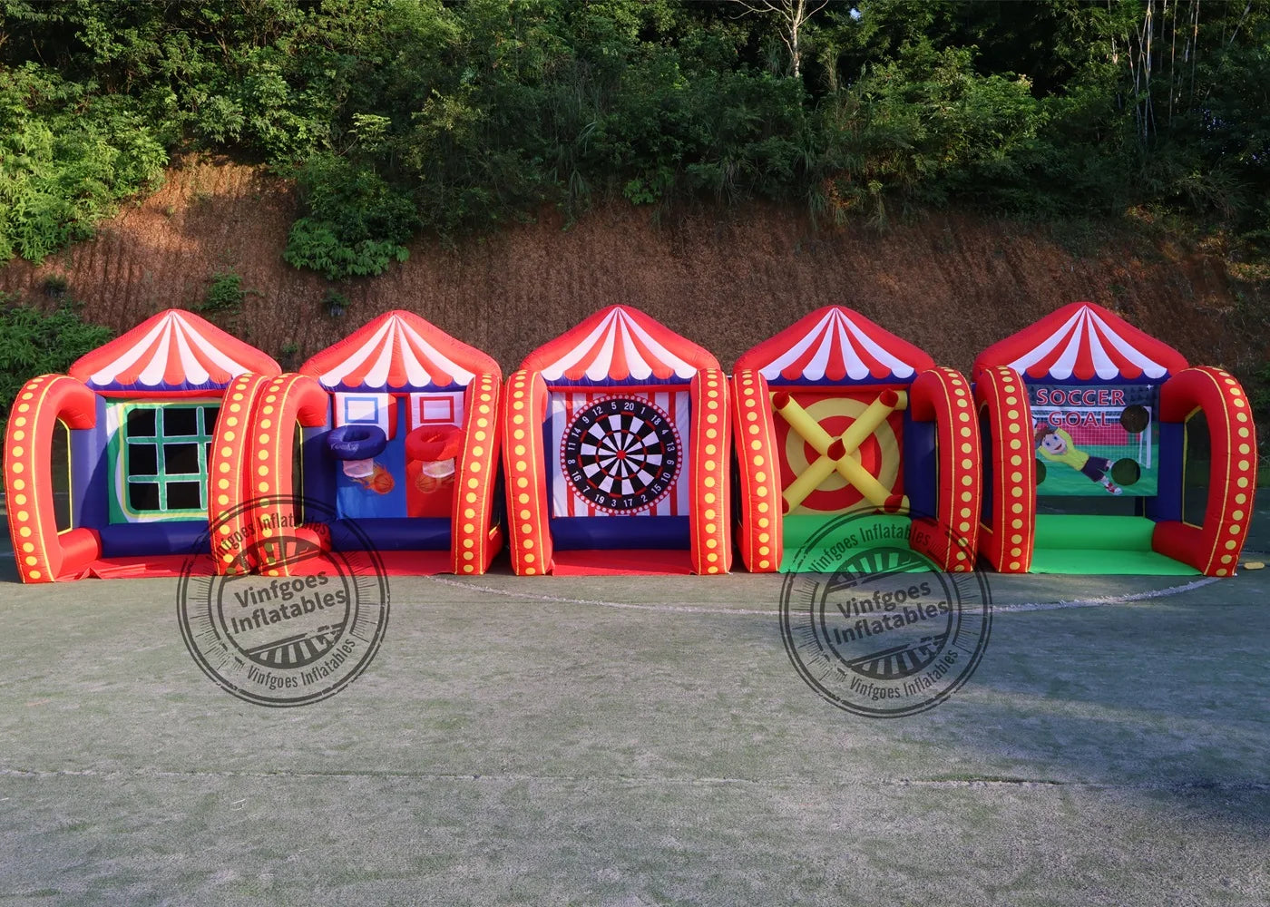 2025 Newest 5 in 1 Inflatable Carnival Bundle Games Soccer Dart Knock Down Ring Ross Game For Kids And Adults