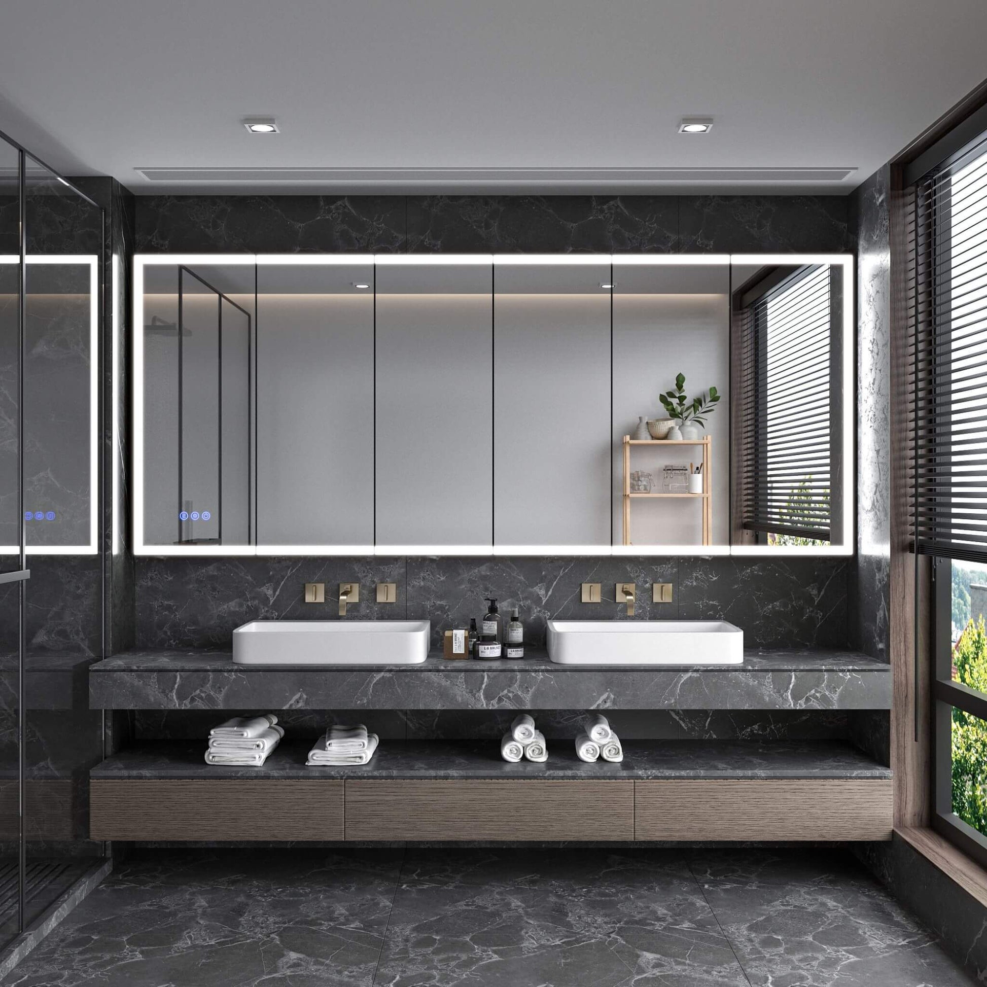 Upgrade your daily routine with the Nuvia 96x40-Inch Medicine Cabinet Mirror, and enjoy a perfectly lit, organized, and steam-free bathroom.