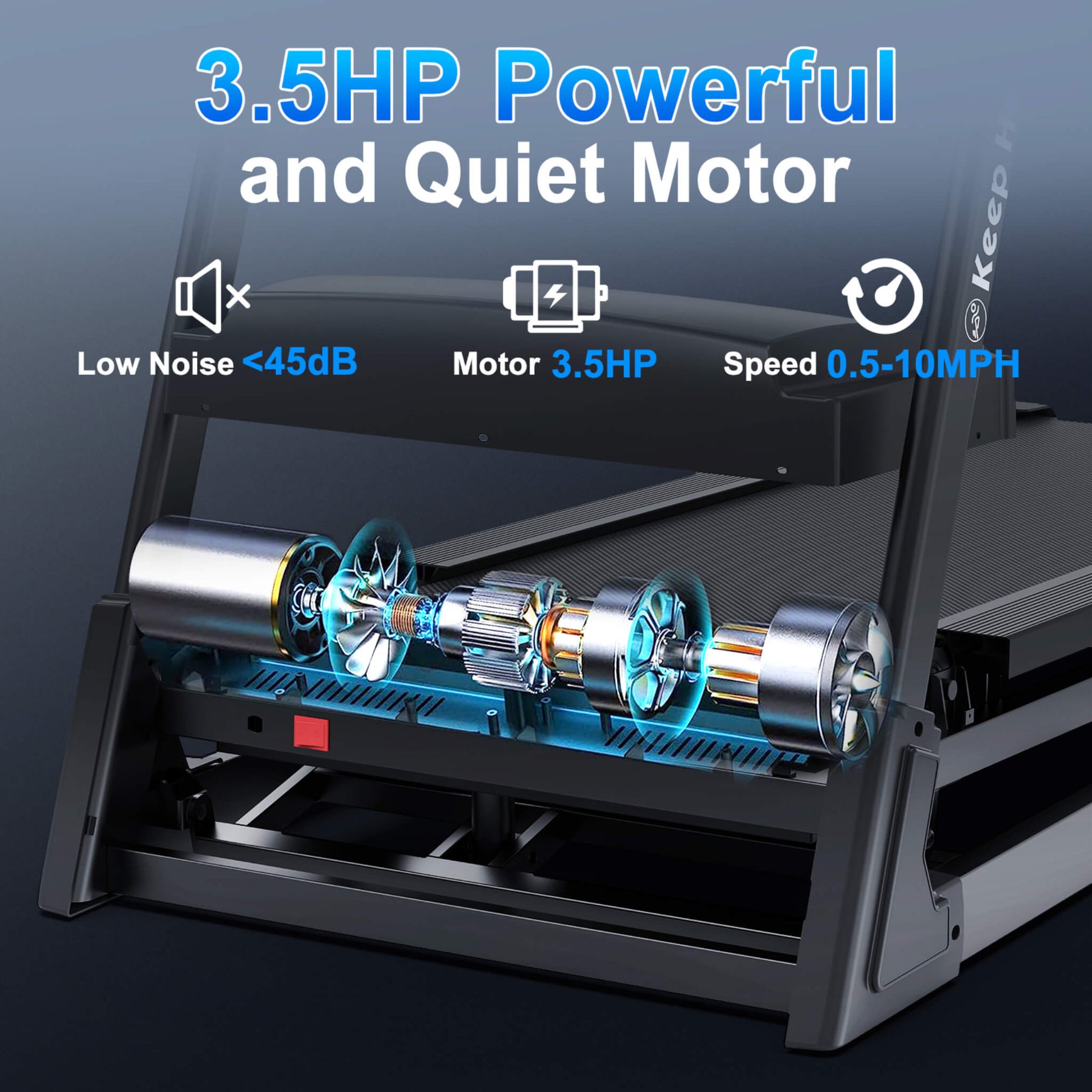 3.5HP Motor: Supports speeds up to 10 MPH for a powerful workout
