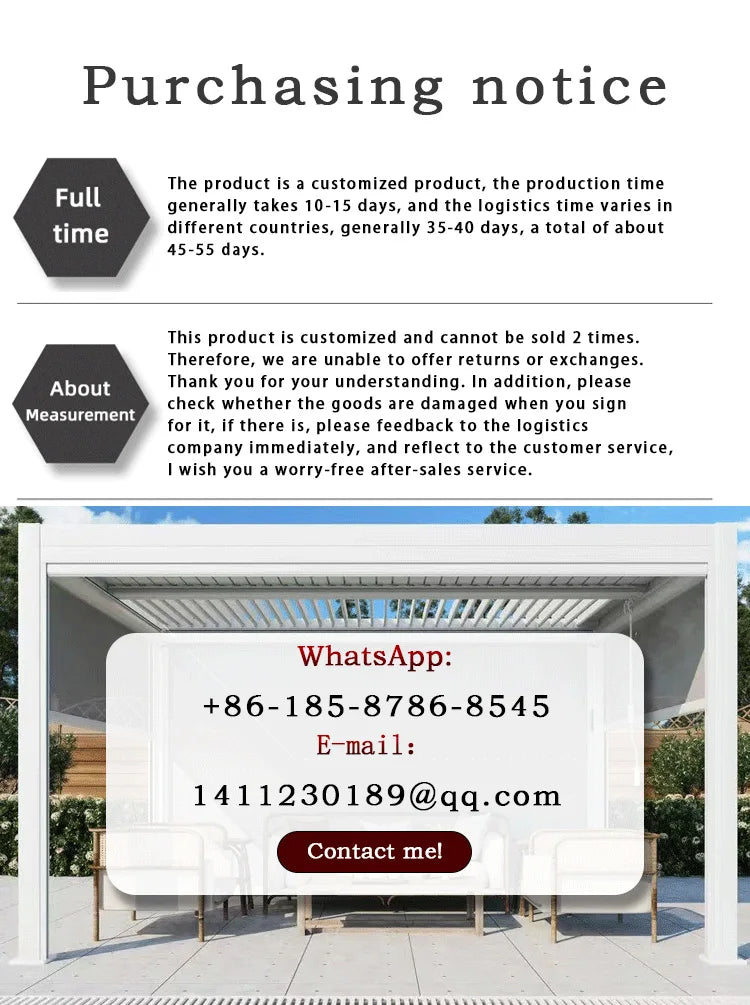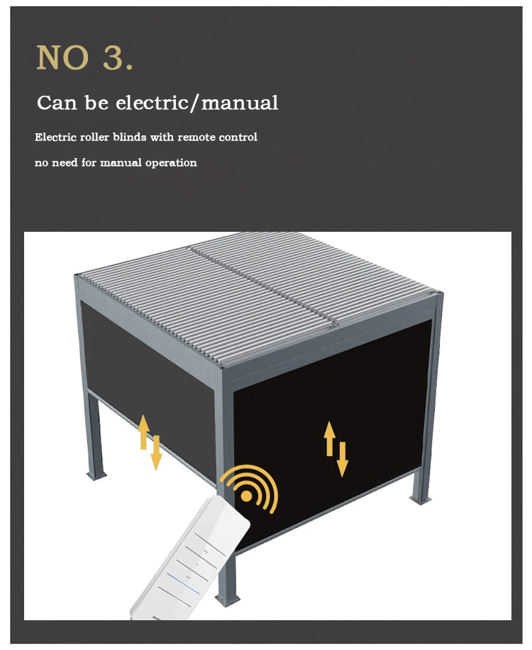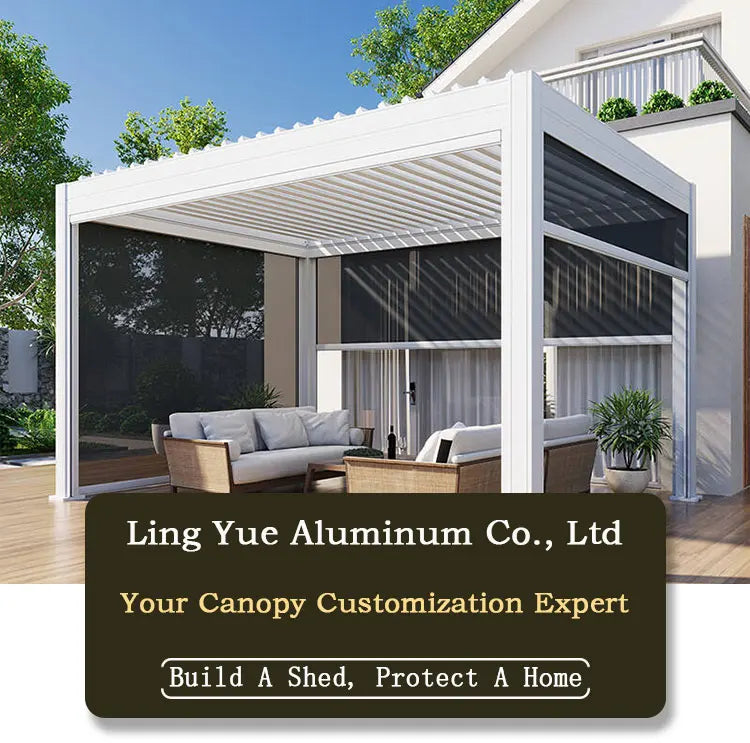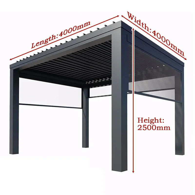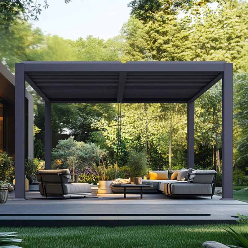 Electric Adjustable Bioclimatic Louvered Motorized Aluminous Waterproof Outdoor Living Garden Pergolas Gazebo Sunroom Pavilion