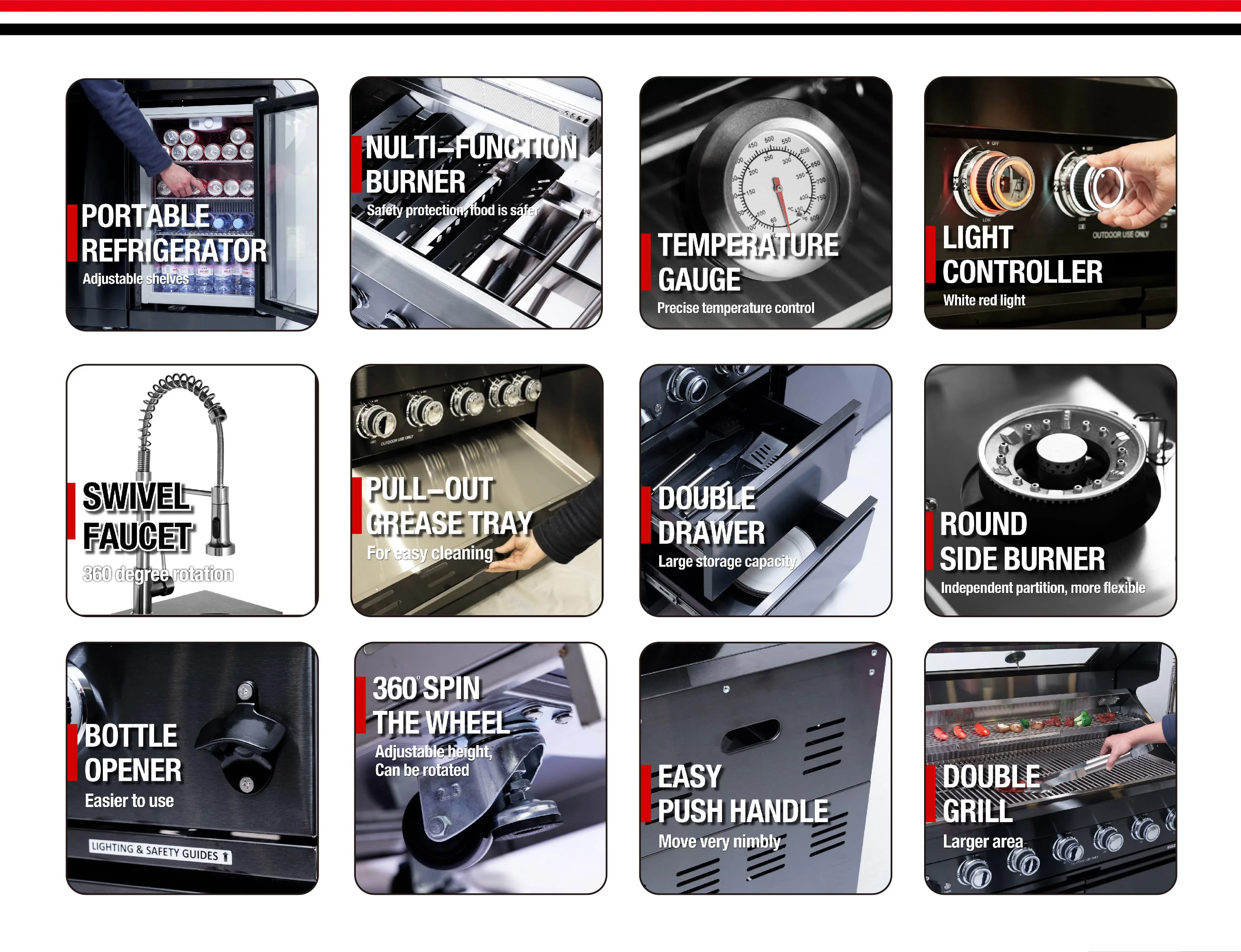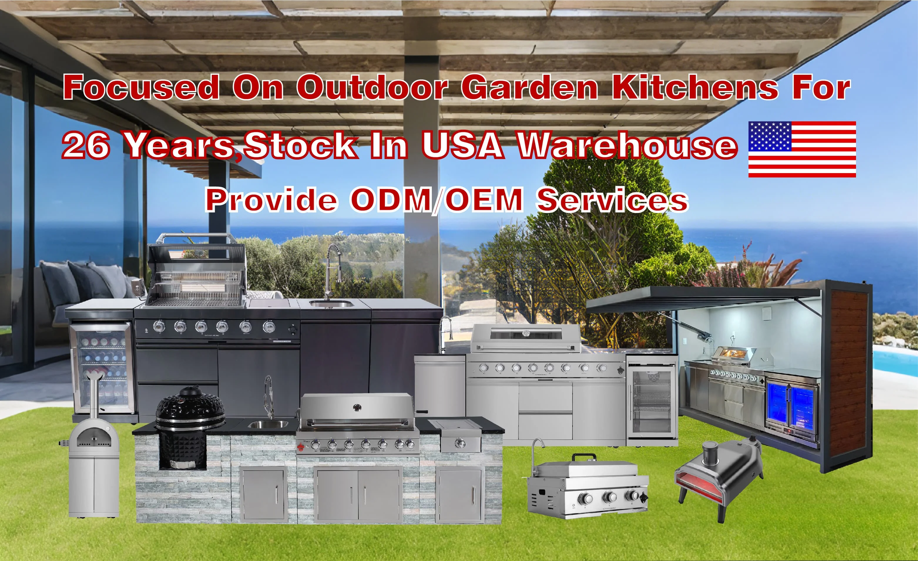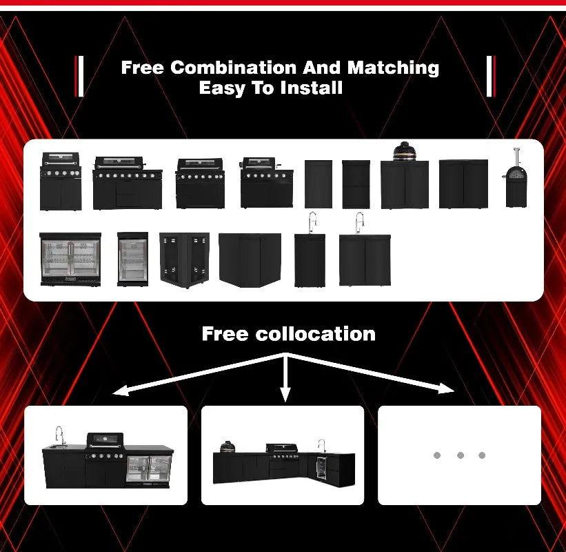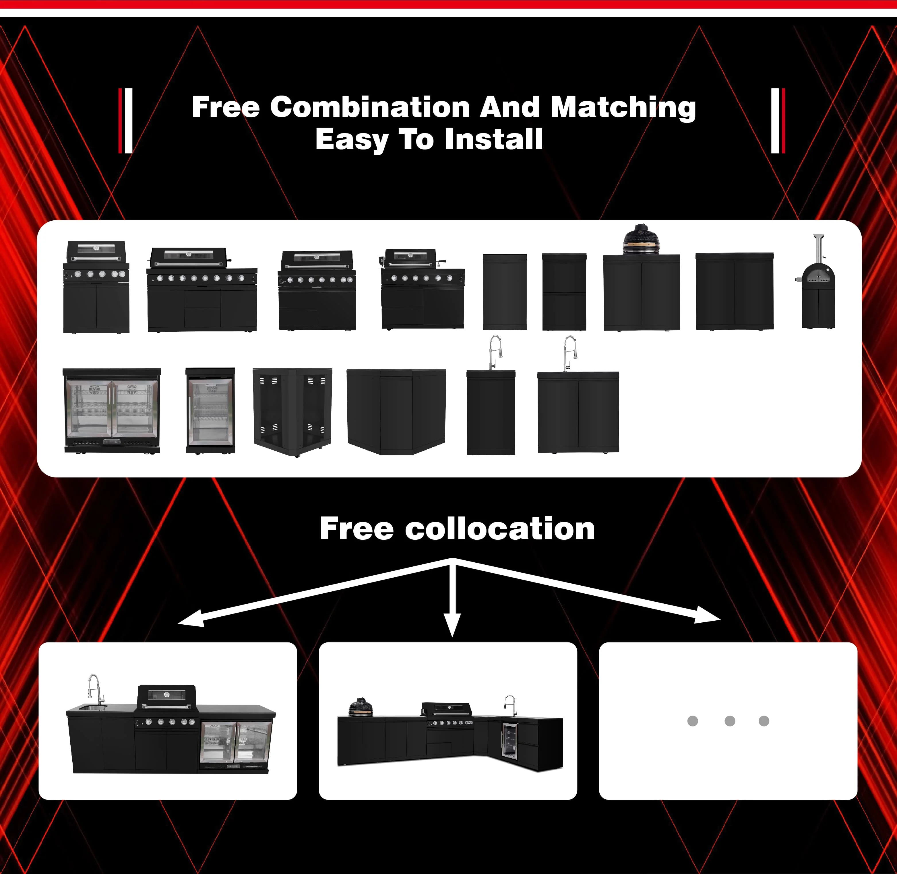 Luxury Garden Gas BBQ Grill 304 Stainless Steel Black Outdoor Kitchen Cabinet Island