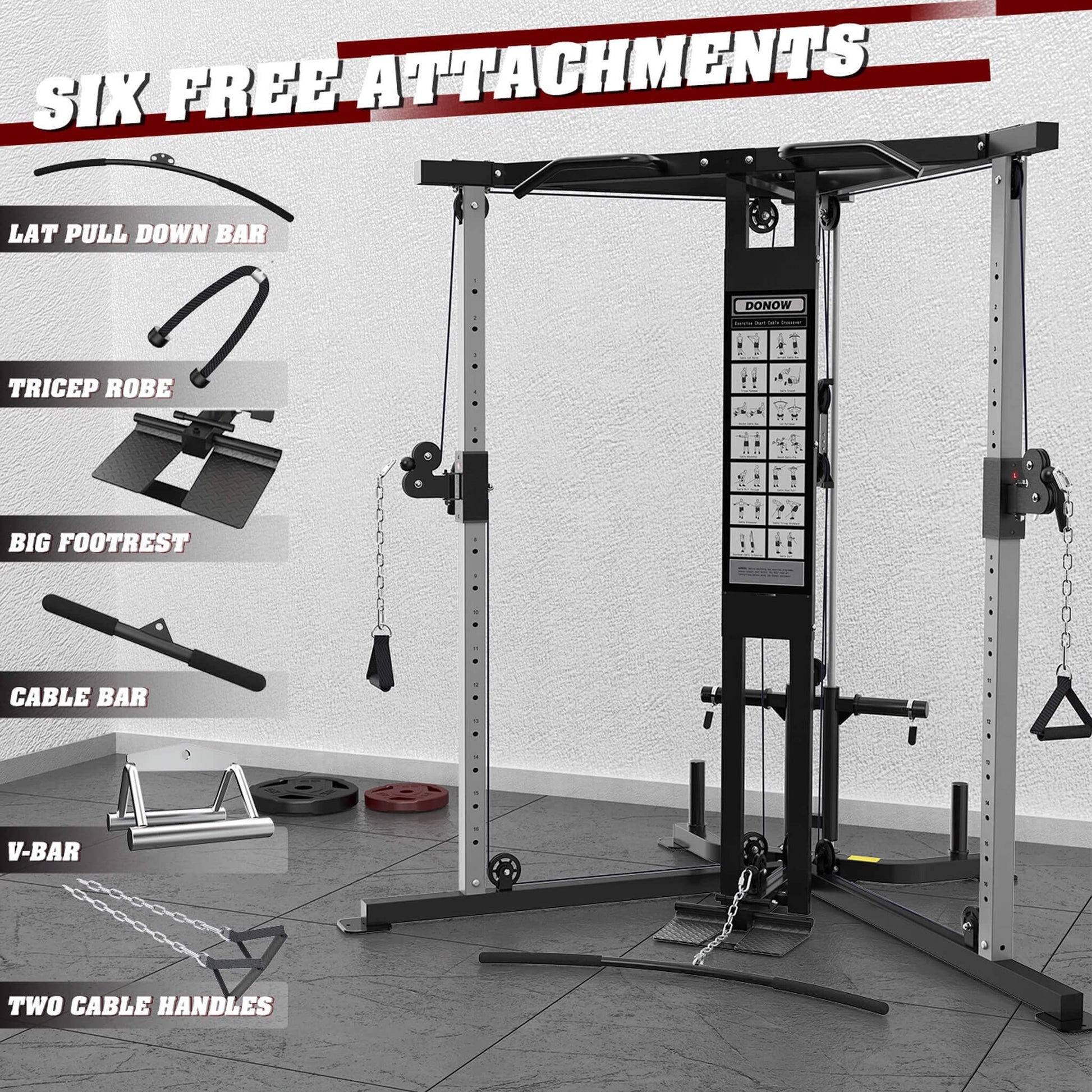 Versatile Attachments: Includes six attachments for a variety of exercises