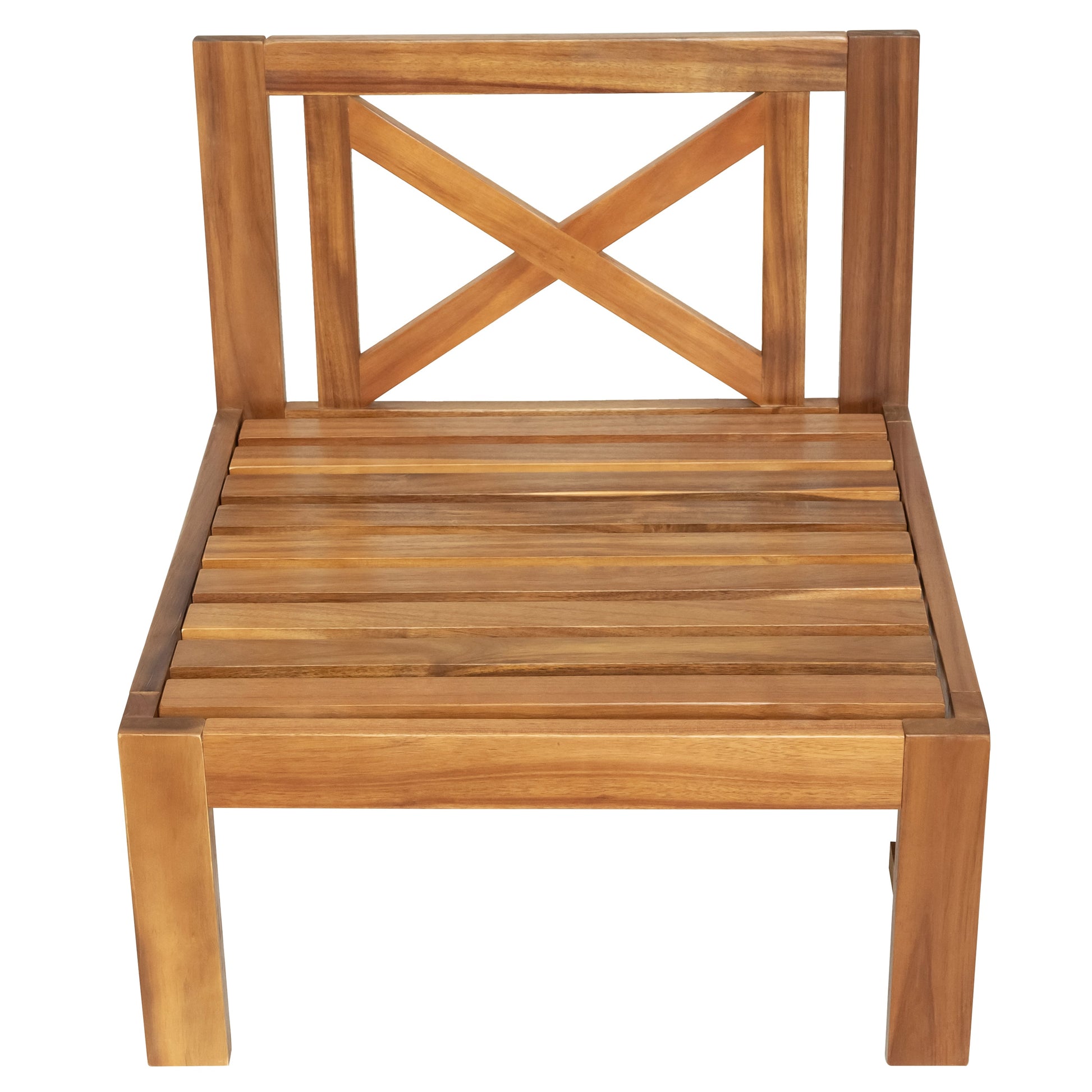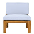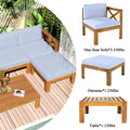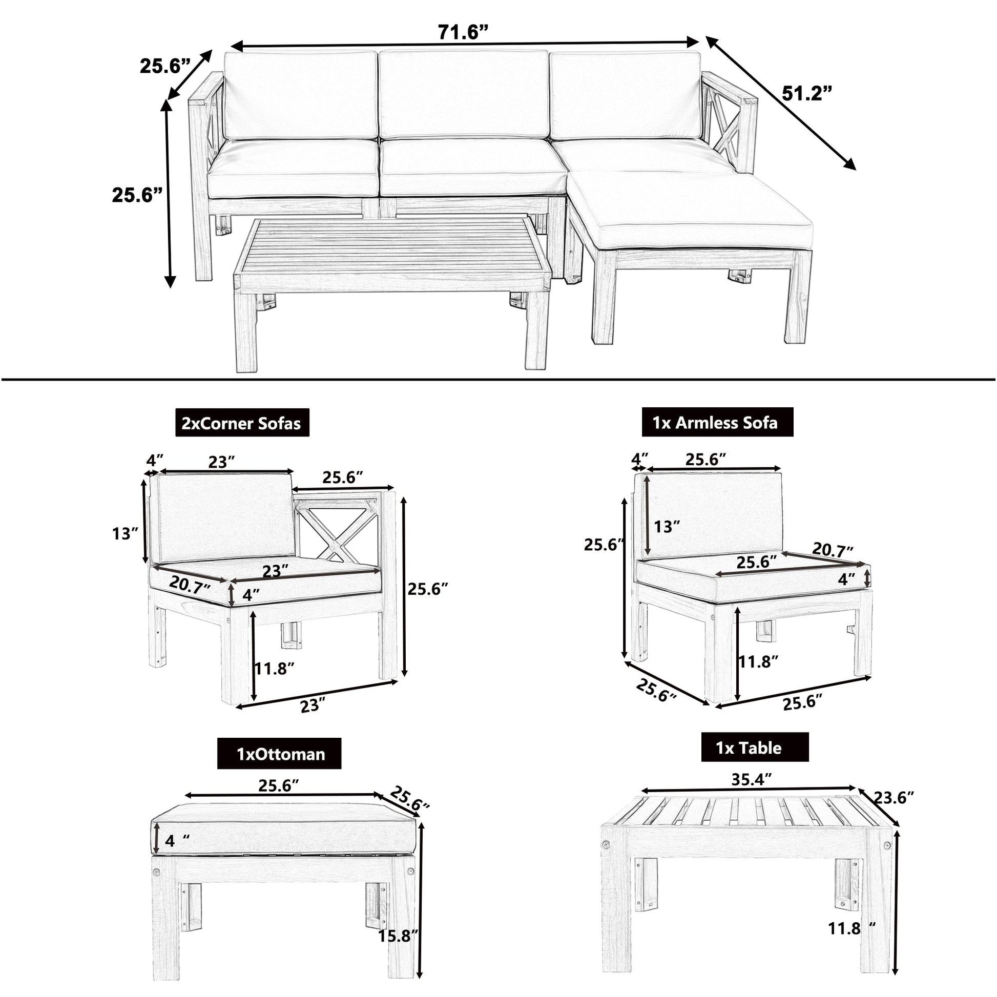 The TOPMAX 5-Piece Sectional Patio Sofa Set includes two corner sofas, one armless sofa, one ottoman, one tea table, cushions, and back pillows. Crafted with premium acacia wood and water-resistant, UV-resistant cushions, this set is built for durability and comfort. It’s perfect for any outdoor space, offering a stylish and versatile seating arrangement.